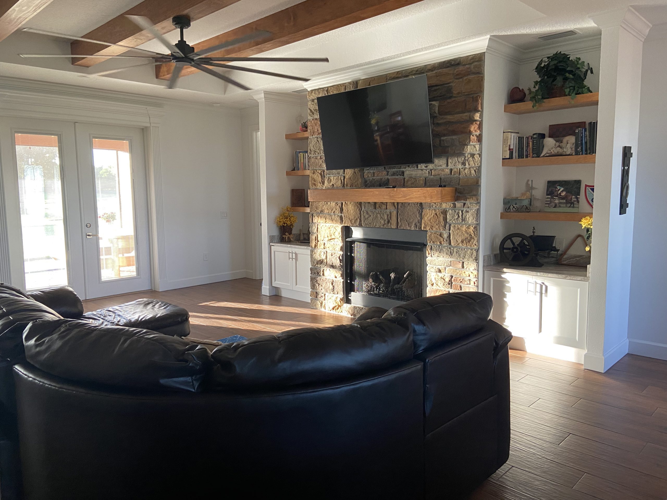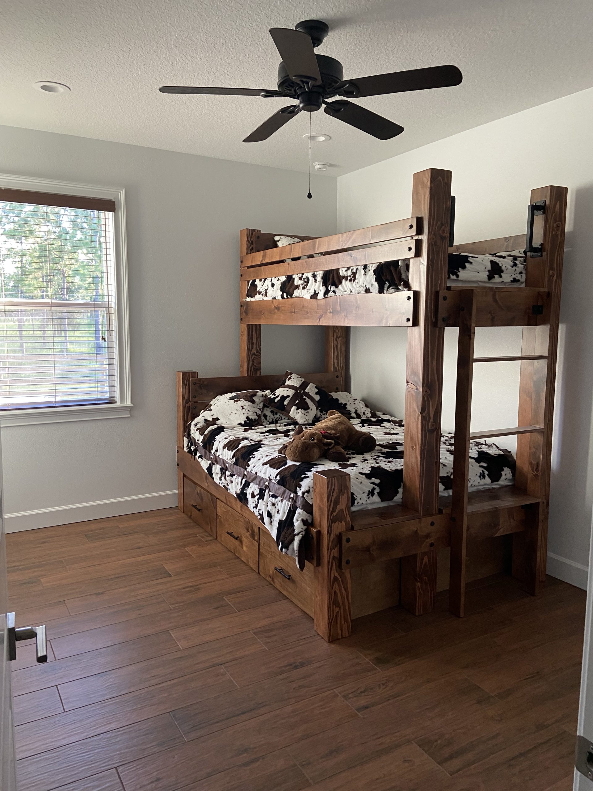 > One bedroom has a bunk bed. Queen bed on bottom / Twin bed on top the other bedroom has a queen bed.